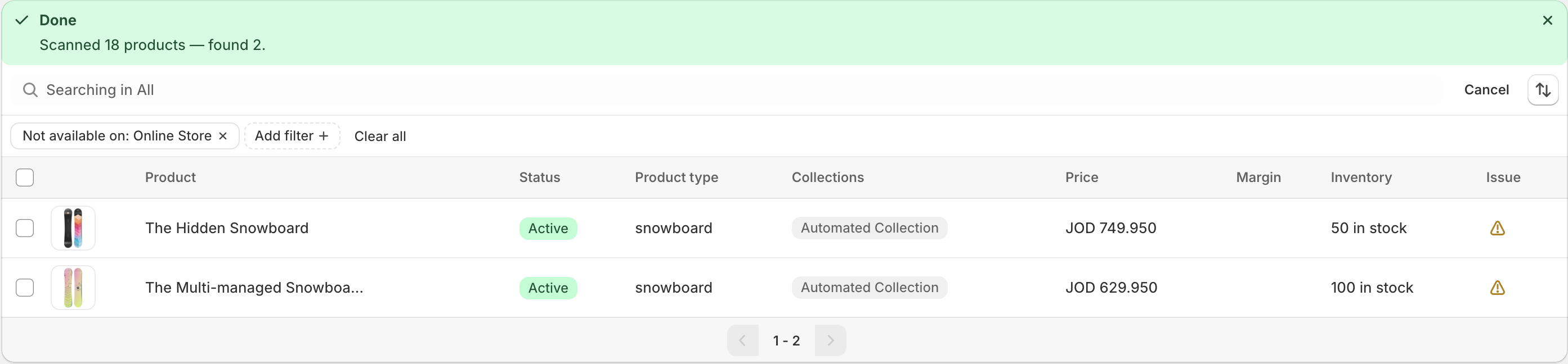 Availability filter finds products which are hidden on a specific channel while being active in your store.